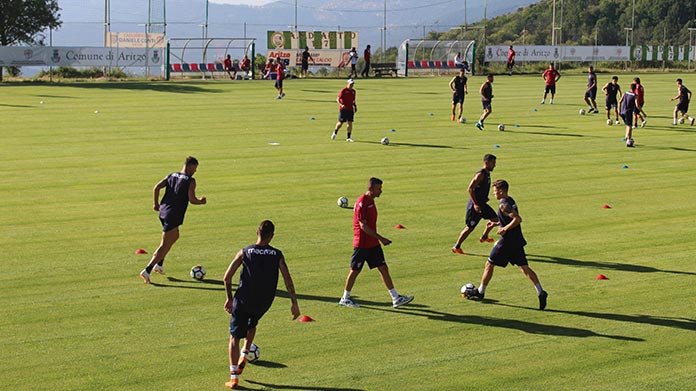 Giornata faticosa per i rossoblù che oggi, al Centro Sportivo di Assemini, hanno svolto una doppia seduta di allenamento in vista della partita di domenica contro la Juventus.