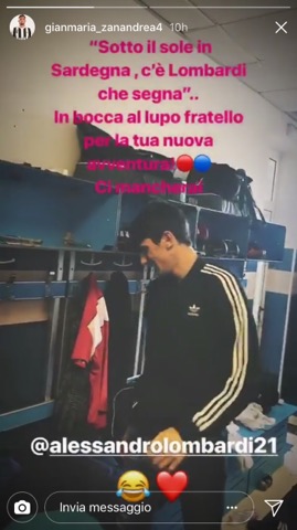 INSTAGRAM – Un ulteriore indizio sull’imminente arrivo del giocatore giunge da Instagram. I suoi ormai ex compagni hanno già salutato il centrocampista. In particolare, Gianmaria Zanandrea ha postato nelle sue Instagram stories un coro inequivocabile, intonato nello spogliatoio bianconero: «Sotto il sole di Sardegna, c’è Lombardi che segna». «In bocca al lupo fratello – prosegue il post di Zanandrea – per la tua nuova avventura, ci mancherai». Tutto accompagnato dai colori rossoblù.