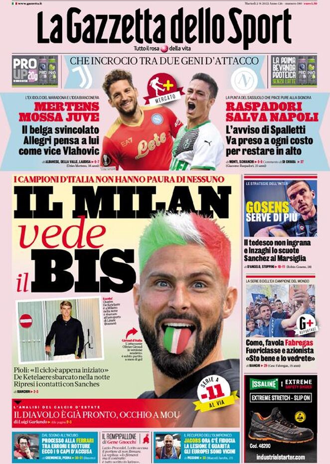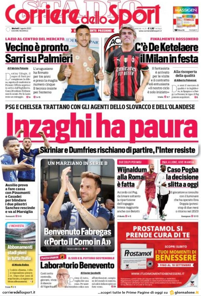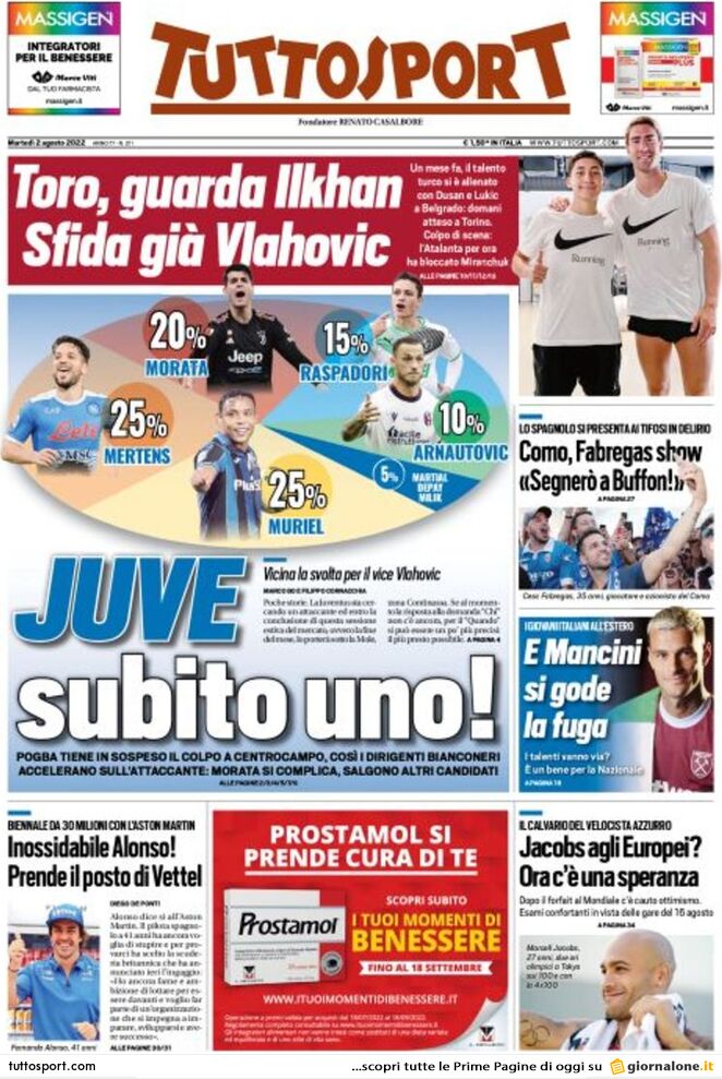 Le prime pagine dei principali quotidiani sportivi – 2 agosto