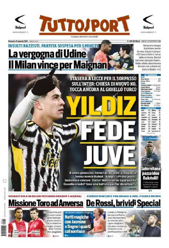 Le prime pagine dei Quotidiani Sportivi di Oggi, 21 gennaio: Tuttosport, Gazzetta dello Sport e Corriere dello Sport