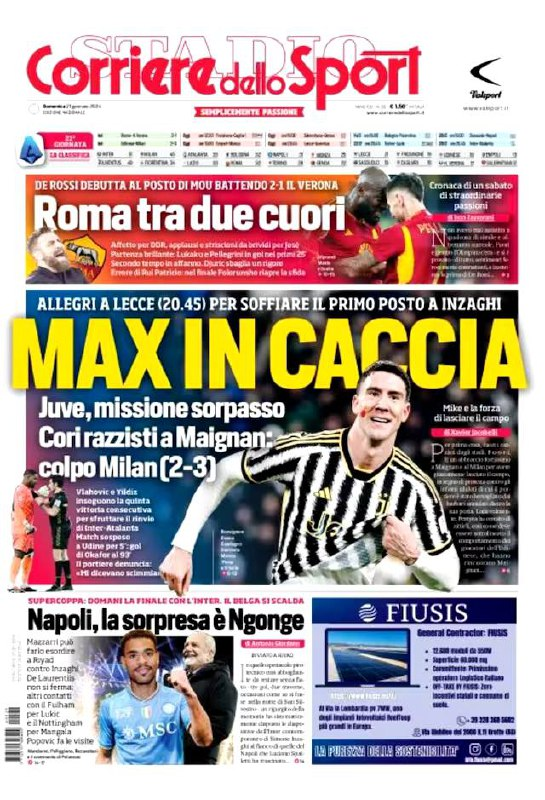 Le prime pagine dei principali quotidiani sportivi – 21 gennaio