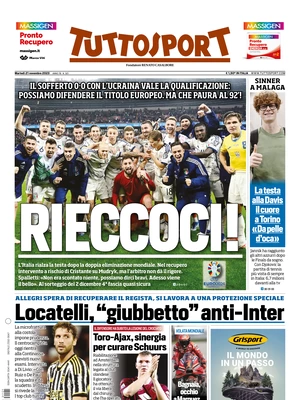 Le prime pagine dei Quotidiani Sportivi di Oggi, 21 novembre: Tuttosport, Gazzetta dello Sport e Corriere dello Sport