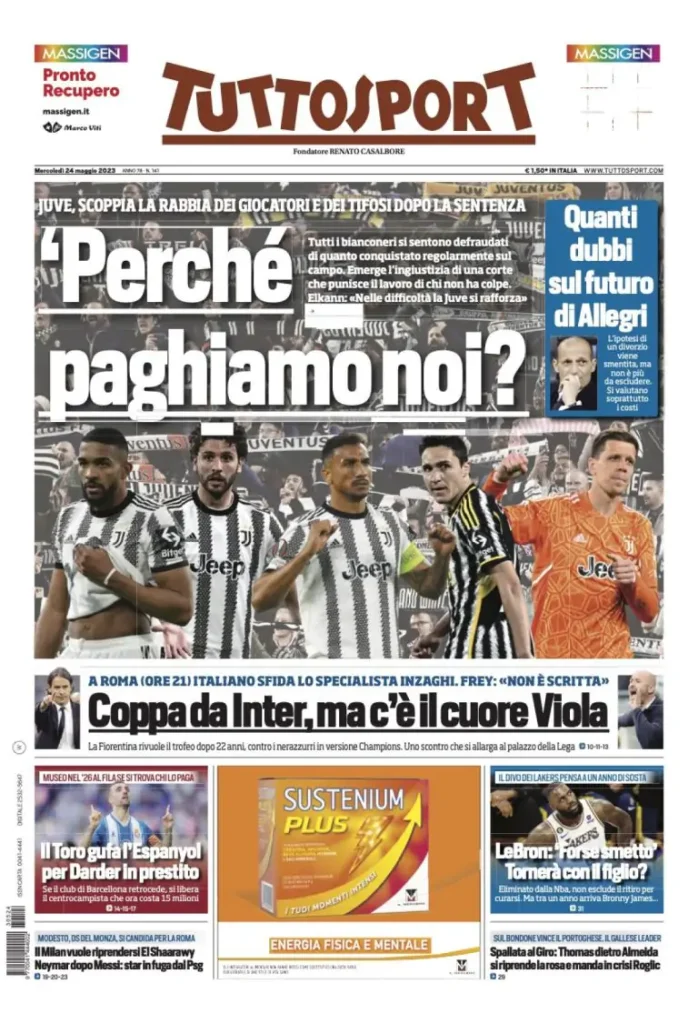 Le prime pagine dei Quotidiani Sportivi di Oggi, 24 maggio: Tuttosport, Gazzetta dello Sport e Corriere dello Sport