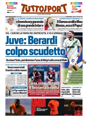 Le prime pagine dei Quotidiani Sportivi di Oggi, 29 settembre: Tuttosport, Gazzetta dello Sport e Corriere dello Sport