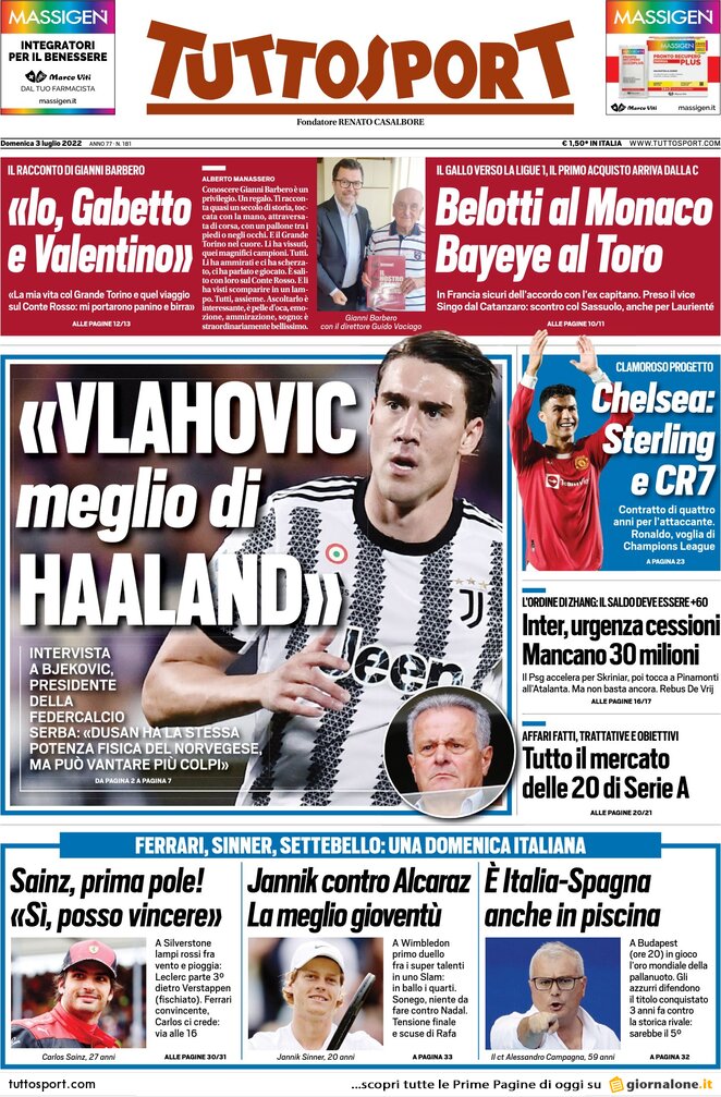 Le prime pagine dei Quotidiani Sportivi di Oggi, 3 luglio: Tuttosport, Gazzetta dello Sport e Corriere dello Sport