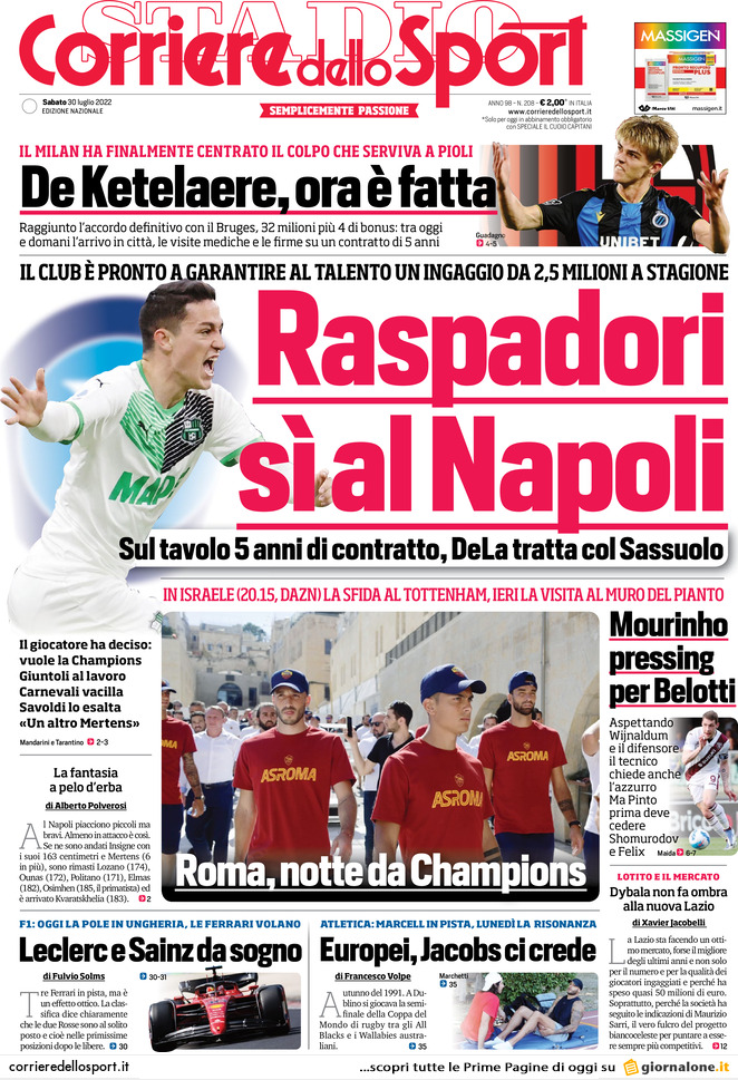 Le prime pagine dei principali quotidiani sportivi – 30 luglio