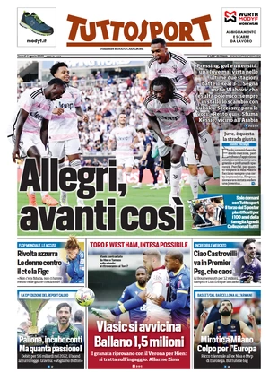 Le prime pagine dei Quotidiani Sportivi di Oggi, 4 agosto: Tuttosport, Gazzetta dello Sport e Corriere dello Sport