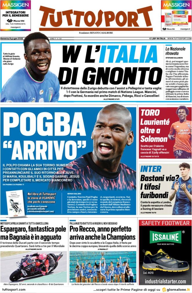 Le prime pagine dei principali quotidiani sportivi – 5 giugno