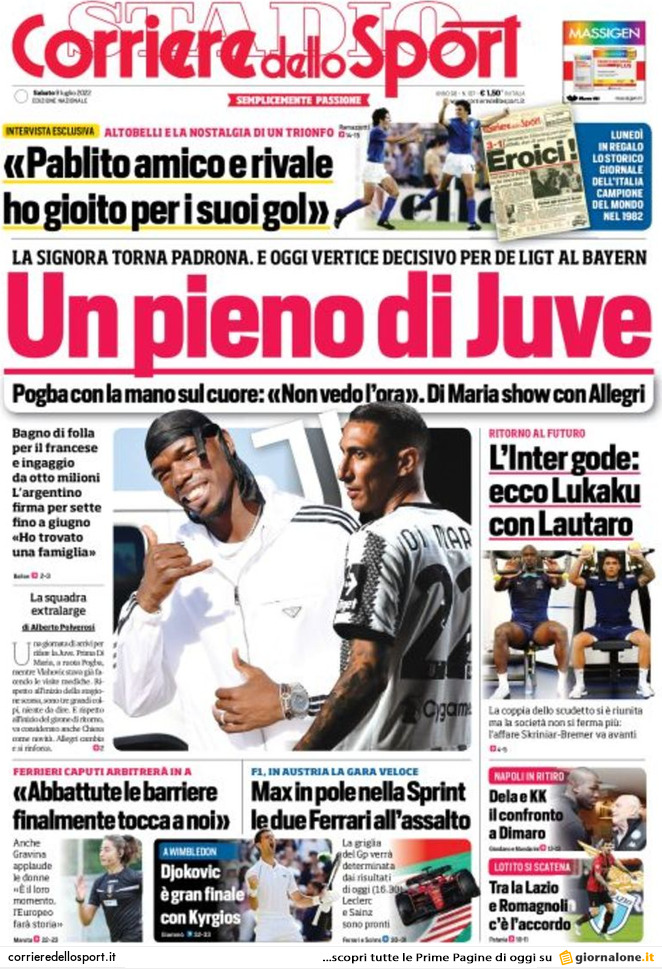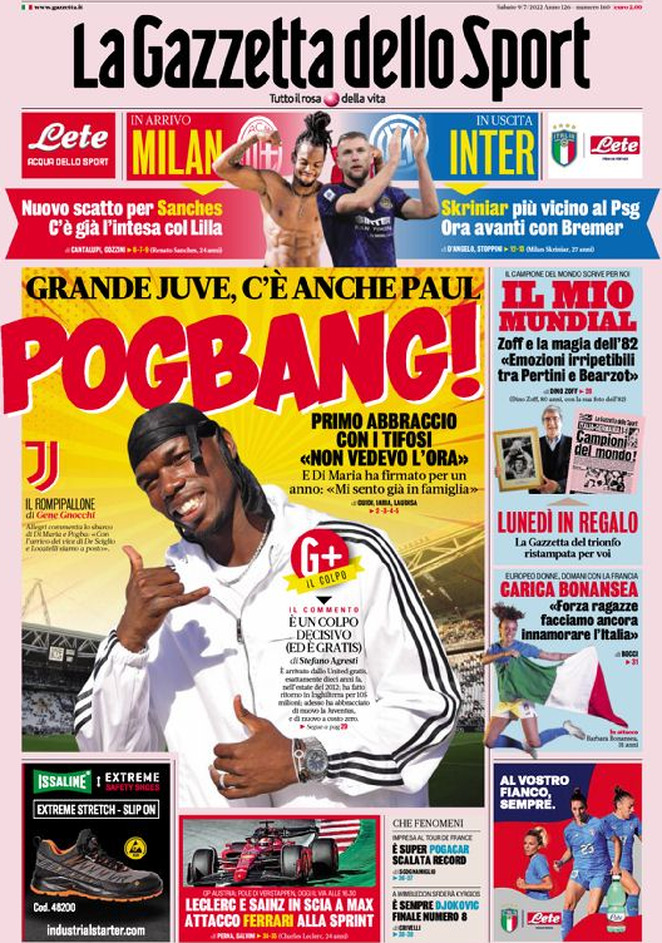 Le prime pagine dei principali quotidiani sportivi – 9 luglio