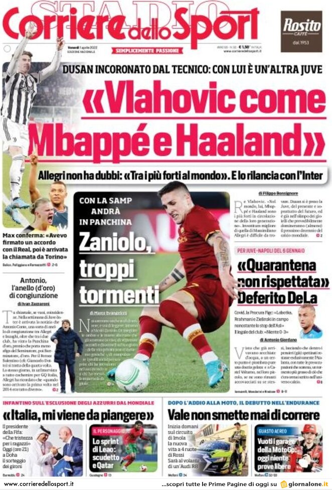 Le prime pagine dei quotidiani sportivi di oggi – 1 aprile