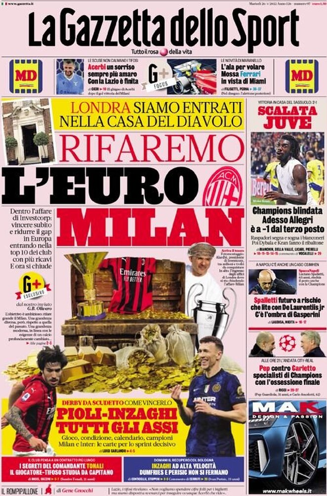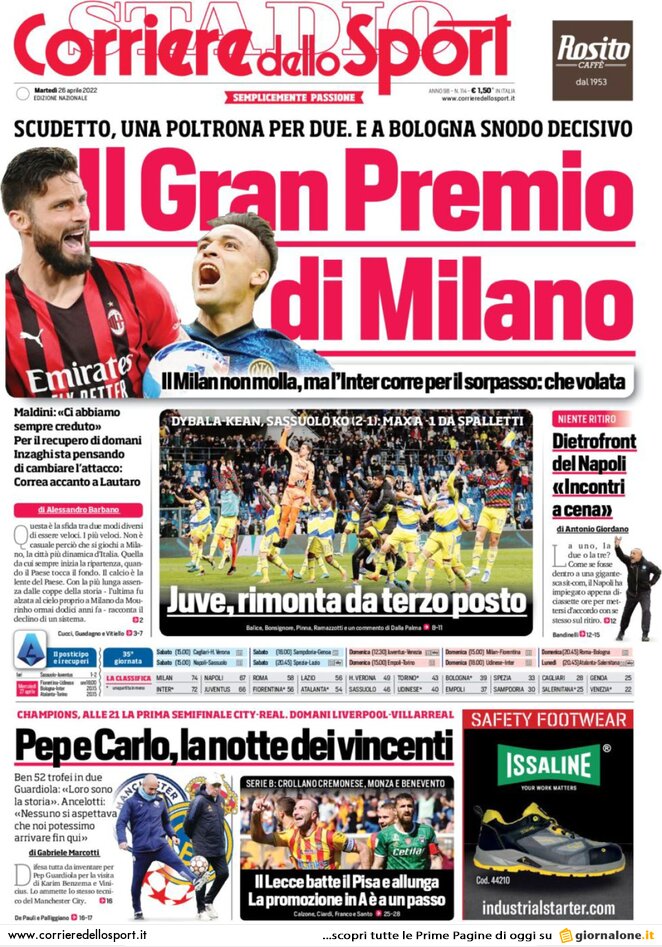 Le prime pagine dei quotidiani sportivi di oggi – 26 aprile