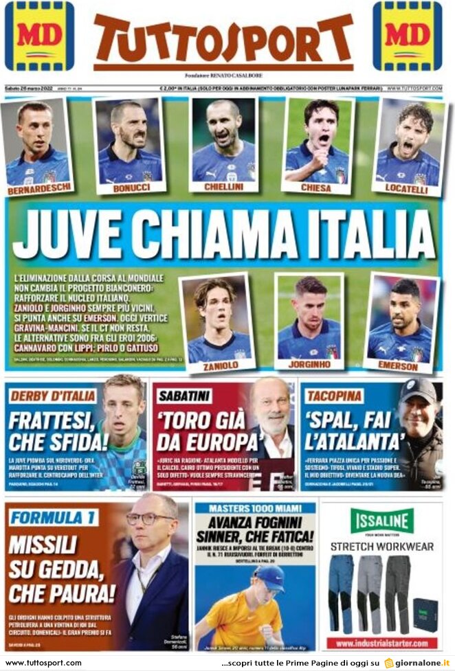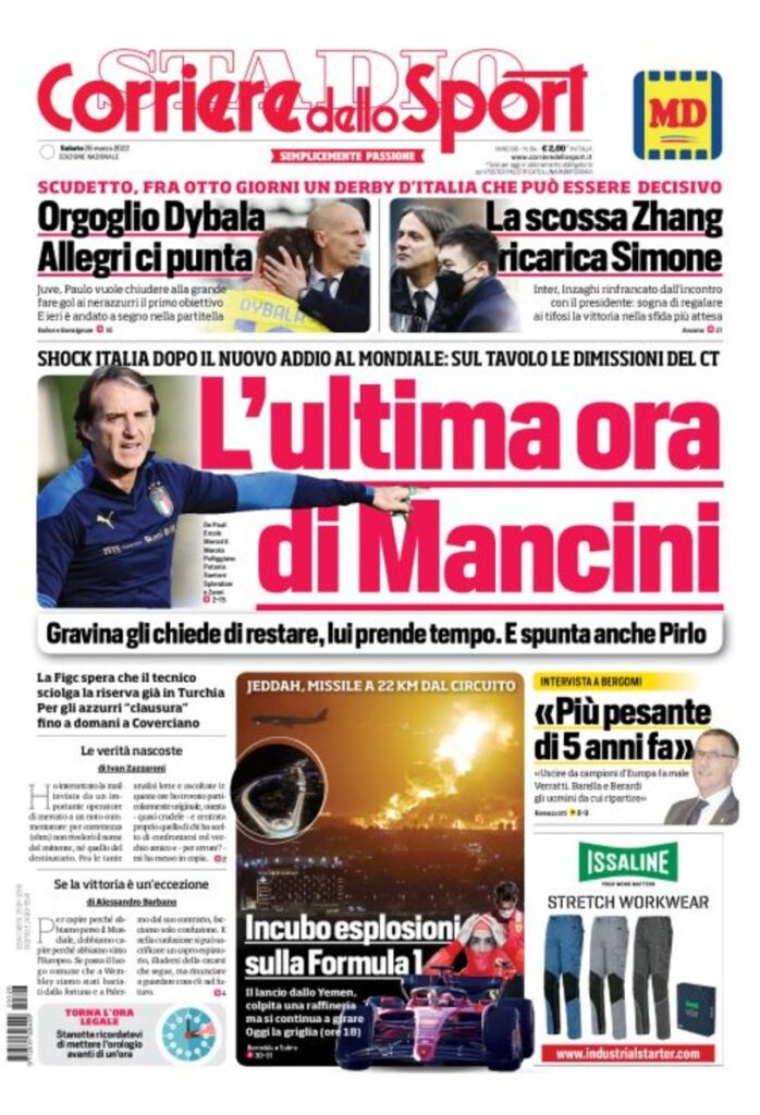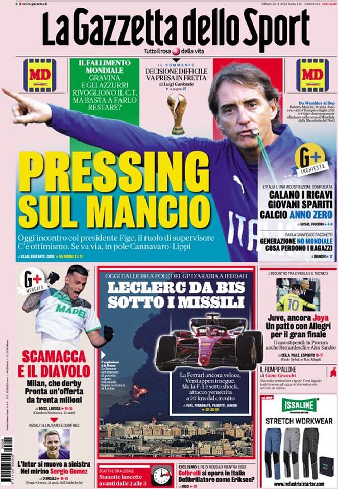 Le prime pagine dei quotidiani sportivi di oggi – 26 marzo
