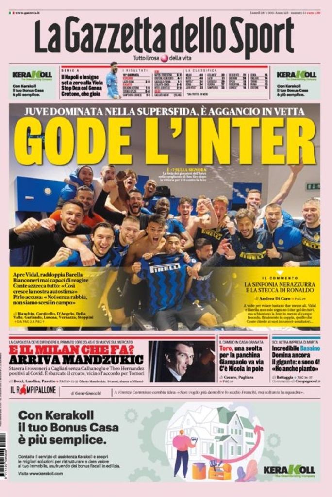 Le prime pagine dei quotidiani sportivi italiani