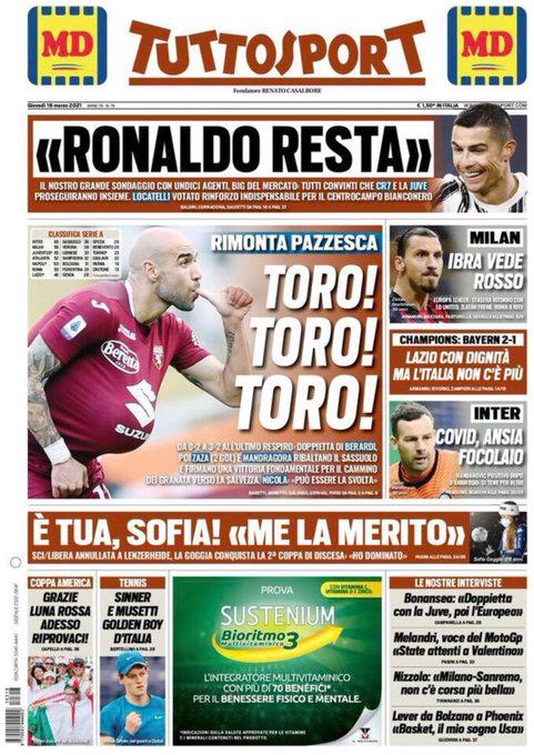 Le prime pagine dei Quotidiani Sportivi di Oggi in edicola: Tuttosport, Gazzetta dello Sport e Corriere dello Sport