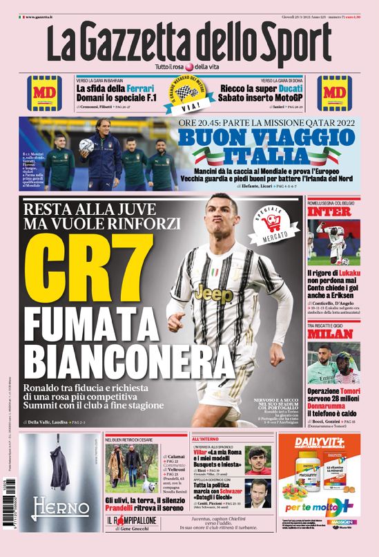 Le Prime Pagine dei Quotidiani Sportivi italiani di oggi