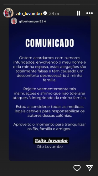 «Ieri ci siamo svegliati con delle voci infondate che riguardavano il mio nome e quello di mia moglie. Queste accuse sono completamente false e hanno causato inutili disagi alla mia famiglia. Respingo fermamente tali insinuazioni e affermo che non tollererò attacchi all’integrità della mia famiglia. Sto prendendo in considerazione di ricorrere alle vie legali per assicurare alla giustizia gli autori di queste diffamazioni. Colgo l’occasione per rassicurare i fan, la famiglia e gli amici».