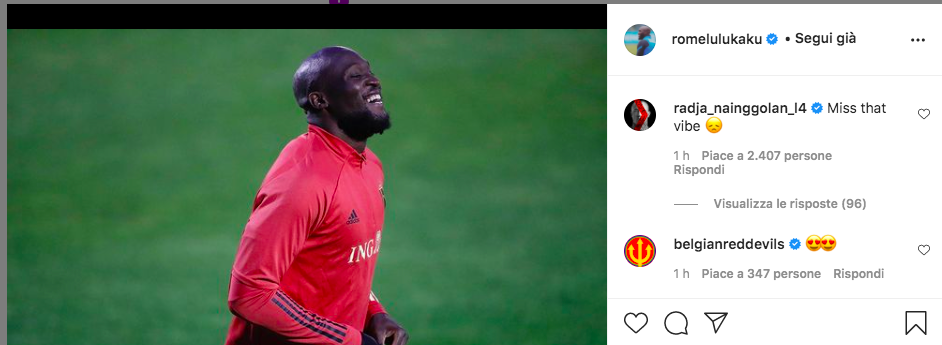 Radja Nainggolan ha commentato un post su Instagram di Romelu Lukaku, fresco di convocazione da parte del Belgio, sottolineando come gli manchi giocare con la maglia dei Diavoli Rossi.