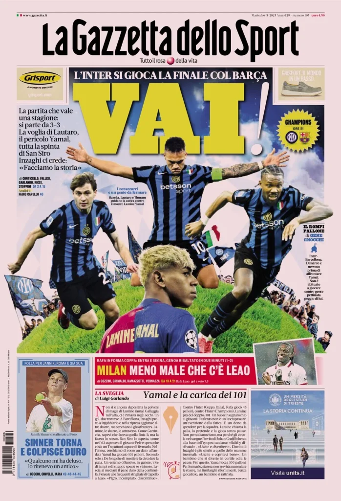 Le prime pagine dei principali quotidiani sportivi – 6 maggio