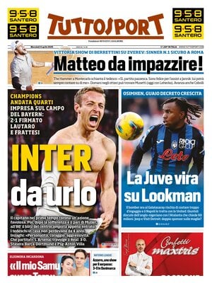 Le prime pagine dei Quotidiani Sportivi di Oggi, 9 aprile: Tuttosport, Gazzetta dello Sport e Corriere dello Sport