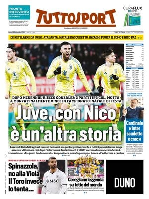 Le prime pagine dei Quotidiani Sportivi di Oggi, 23 dicembre: Tuttosport, Gazzetta dello Sport e Corriere dello Sport