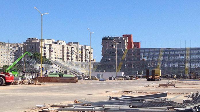 Tanto movimento al cantiere dello stadio temporaneo che ospiterà il Cagliari a partire dalla prossima stagione. Gli operai lavorano al completamento della Main Stand, la tribuna centrale della Sardegna Arena. Con copertura e pannellatura ormai in fase di ultimazione, l’attenzione si sposta su spazi interni, impermeabilizzazione delle gradinate in legno lamellare, montaggio di parapetto e vetri esterni. Al cantiere, però, si opera anche su altri fronti: issati Curva Sud e settore ospiti, inizia a prendere forma il settore Distinti. Inoltre al Sant’Elia è in corso lo smontaggio delle torri faro.