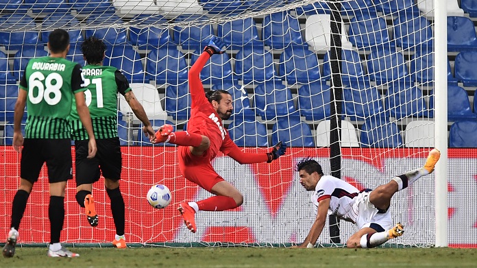 SASSUOLO (4-2-3-1): Consigli 6; Toljan 5.5 (75′ Muldur 5.5), Chiriches 6.5, Ferrari 6, Rogerio 6 (61′ Kyriakopoulos 6), Obiang 5.5 (61′ Bourabia 6.5), Locatelli 6, Berardi 5.5, Djuricic 5.5 (90+5′ Ayhan s.v.), Haraslin 6 (61′ Defrel 5.5), Caputo 5.